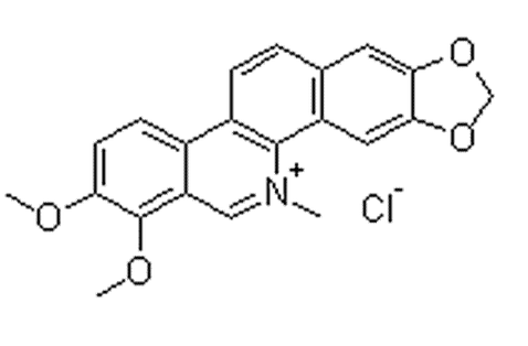 別名 白屈菜赤堿;白屈菜季銨堿;1,2-Dimethoxy-N-methyl-[1,3]benzodioxolo[5,6-c]phenanthridinium chloride