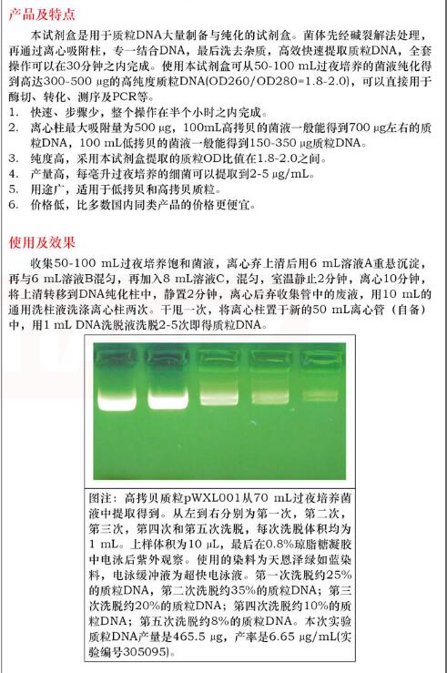 產(chǎn)品名稱:大提柱式質(zhì)粒 DNAout