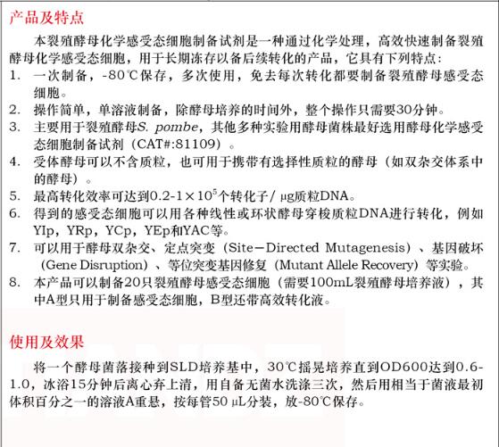 - 上一條:酵母化學感受態細胞制備試劑盒20 次