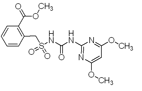 別名 芐嘧磺隆 ;2-{〔(4,6-二甲氧基嘧啶-2-基)氨基碳基〕氨基磺基甲基}苯甲酸甲酯,N-(4,6-二甲氧基嘧啶-2-基)鄰甲酸甲酯芐基磺酰脲,農(nóng)得時(shí),芐嘧磺隆,3-(4,6-二甲氧基嘧啶-2-基)-1-(2-甲氧基甲酰基芐基)磺酰脲;