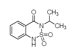 別名 滅草松;百草克;苯并硫二嗪酮;噻草平;排草丹;本達隆;3-異丙基-(1H)-苯駢-2,1,3-噻二嗪-4-酮-2,2-二氧化物;3-Isopropyl-1H-2,1,3-benzothiadiazin-4(3H)-one-2,2-dioxide; 3-Isopropyl-3,4-dihydro-2,1,3-benzothiadiazin-4(1H)-one 2,2-dioxide; Adagio; BAS 351H; Basagran; Basagran 4E; Bendioxide; Thiadiazinol;
