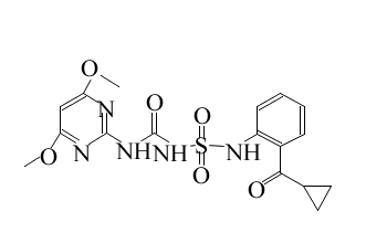 別名  環丙嘧磺隆 ;N-{{[2-(Cyclopropylcarbonyl)phenyl]amino}sulfonyl}-N-(4,6-dimethoxy-2-pyrimidinyl)urea
