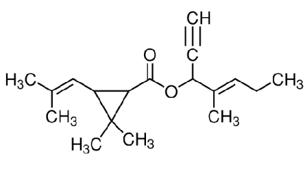 別名  烯炔菊酯 ;右旋反式炔戊菊酯, 烯炔菊酯,右旋-反式-2,2-二甲基-3-(2-甲基-1-丙烯基)環(huán)丙烷羧酸 (E)-1-乙炔基-2-甲基--2-烯基酯;1-Ethinyl-2-methyl-2-penten-1-yl chrysanthemate