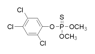 別名 皮蠅硫磷;0,O-二甲基-O-(2,4,5-三氯苯基)硫代磷酸酯;芬氯磷;O,O-dimethyl-O-(2,4,5-trichlorophenyl)phosphorothioate; Phenchlorfos; Remelt; Ronnel; Rovan; Trichlormetaphos; Trichlorometaphos; Trolen; Trolene; Viozene