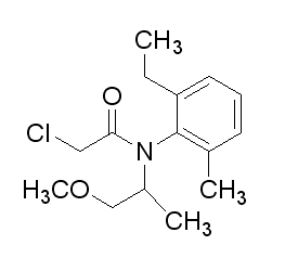 別名 異丙甲草胺 ;丙草胺,2-氯-N-(1-甲基-2-甲氧乙基)-N-(2-乙基-6-甲基苯基)乙酰胺 ;2-Chloro-N-(2-ethyl-6-methylphenyl)-N-(2-methoxy-1-methylethyl)acetamide
