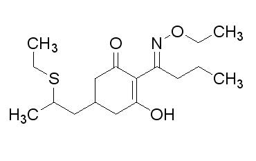 別名 2-[1-(乙氧亞氨基)丁基]-5-[2-(乙硫基丙基)]-3-羥基-2-環已烯-1-酮; 拿捕凈;2-[1-(Ethoximino)butyl]-5-[2-(ethylthio)-propyl]-3-hydroxy-2-cyclohexen-1-one
