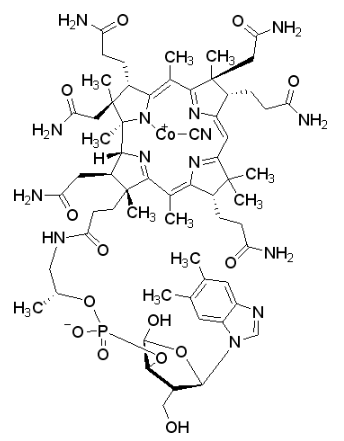 別名 氰鈷胺;VB12;Cyanocobalamin; α-(5,6-Dimethylbenzimidazolyl)cyanocobamide; CN-Cbl; VB12